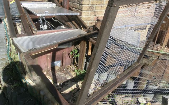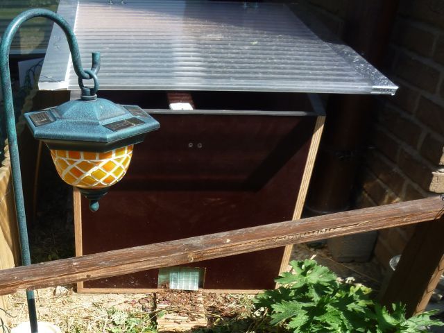 Gewächshaus oder Frühbeet, Lampen und Fensteröffner.
