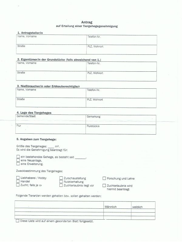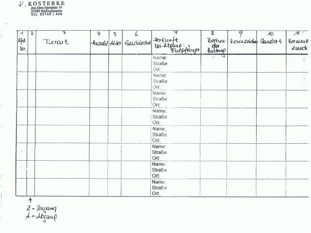 Allgemeiner Hinweis: Die Bestandsanzeige muss binnen 4 Wochen nach Inbesitznahme des Tieres / der Tiere der unteren Landschaftsbehörde (Kreis Herford) vorgelegt werden.