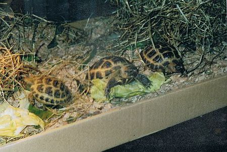 Als die Eier gelegt wurden," haben wir sie sofort in die Tierklinik von Dr. Braune gebracht". Dort kamen sie unter die „Brutglocke", zum Ausschlüpfen. In südlichen Ländern lassen die Schildkröten ihre Eier in der Erde liegen, sie werden von der Sonne ausgebrütet. Je höher die Durchschnittstemperatur ist, desto mehr besteht die Chance, dass aus den ausgebrüteten Tieren Weibchen werden.