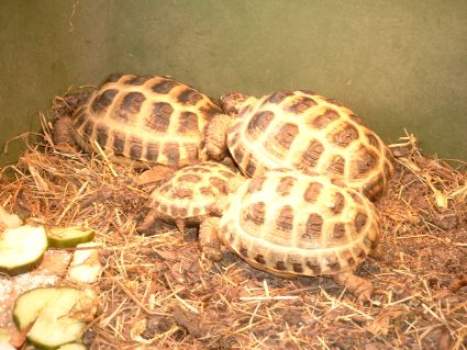 Etwa im März, wenn draußen kein Frost mehr ist, erwachen die Panzertiere aus ihrem Winterschlaf. „Dabei sind die Älteren viel schläfriger" weiß Nadine Felgenträger, die übrigens die Tiere dann immer versorgt, wenn das Ehepaar Kösterke in seinem Ferienhaus in Schweden ist.