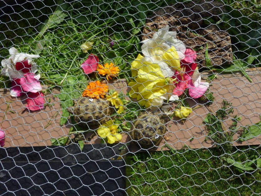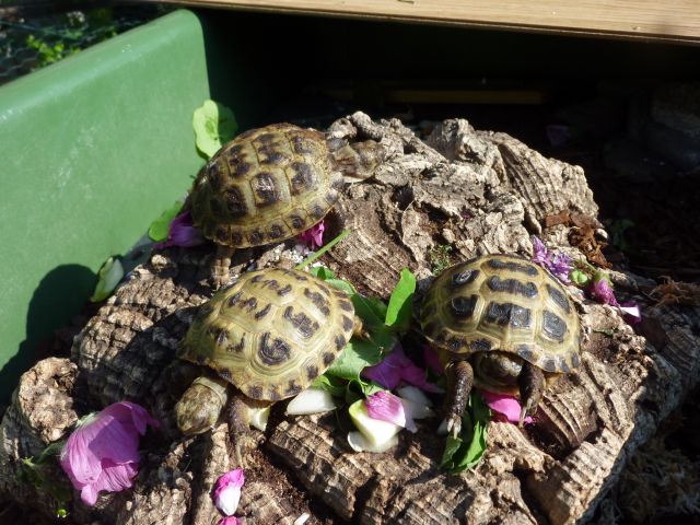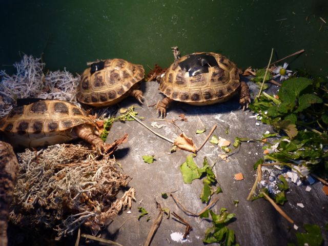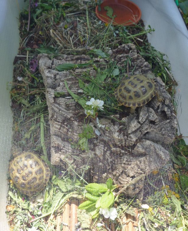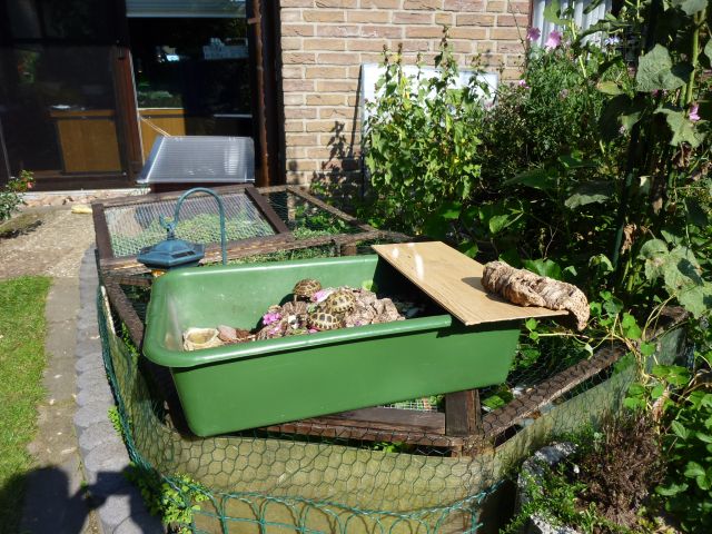 Noch leben die kleinen Sorgenkider in transportablen Frühbeeten - fest auf einem Tisch montiert. Nach der Rückreise gings für die Kleinen in ihr Aussengehege - das sie danach nur zur Starre verlassen haben.