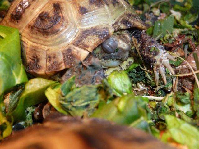 es scheint, sie sind noch nicht richtig aus der Winterstarre angekommen, obwohl sie gut fressen. Beide wurden auf der Matte behandelt und haben, zuhause angekommen, Unmengen gefressen und sich dann sofort zurückgezogen und geschlafen