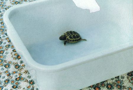 Vor der Kotuntersuchung werden wir Schildkröten von Frauchen gebadet. So